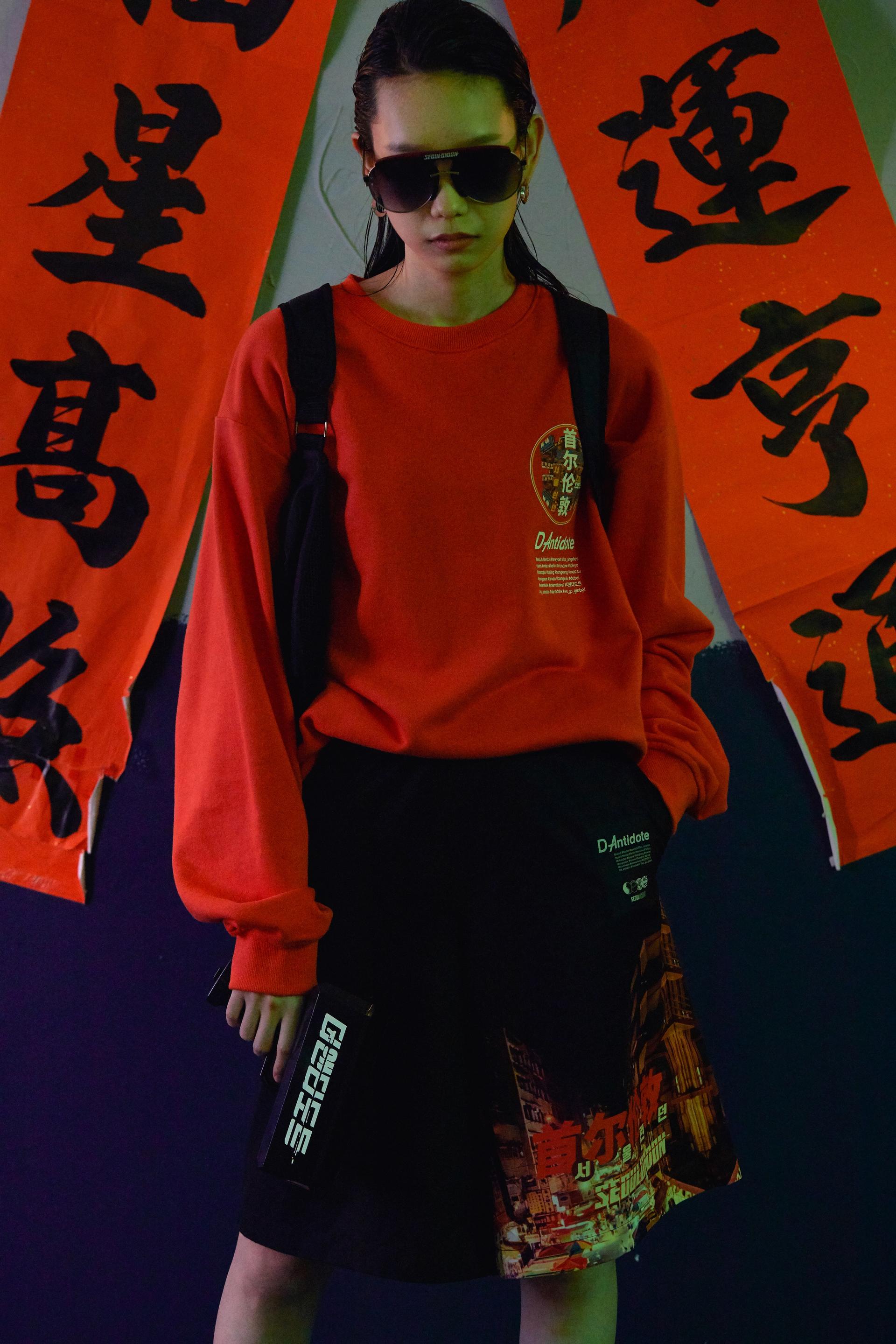 D-ANTIDOTE_SL-NEONSIGN GRAPHIC ROUND SWEAT(ORANGE)