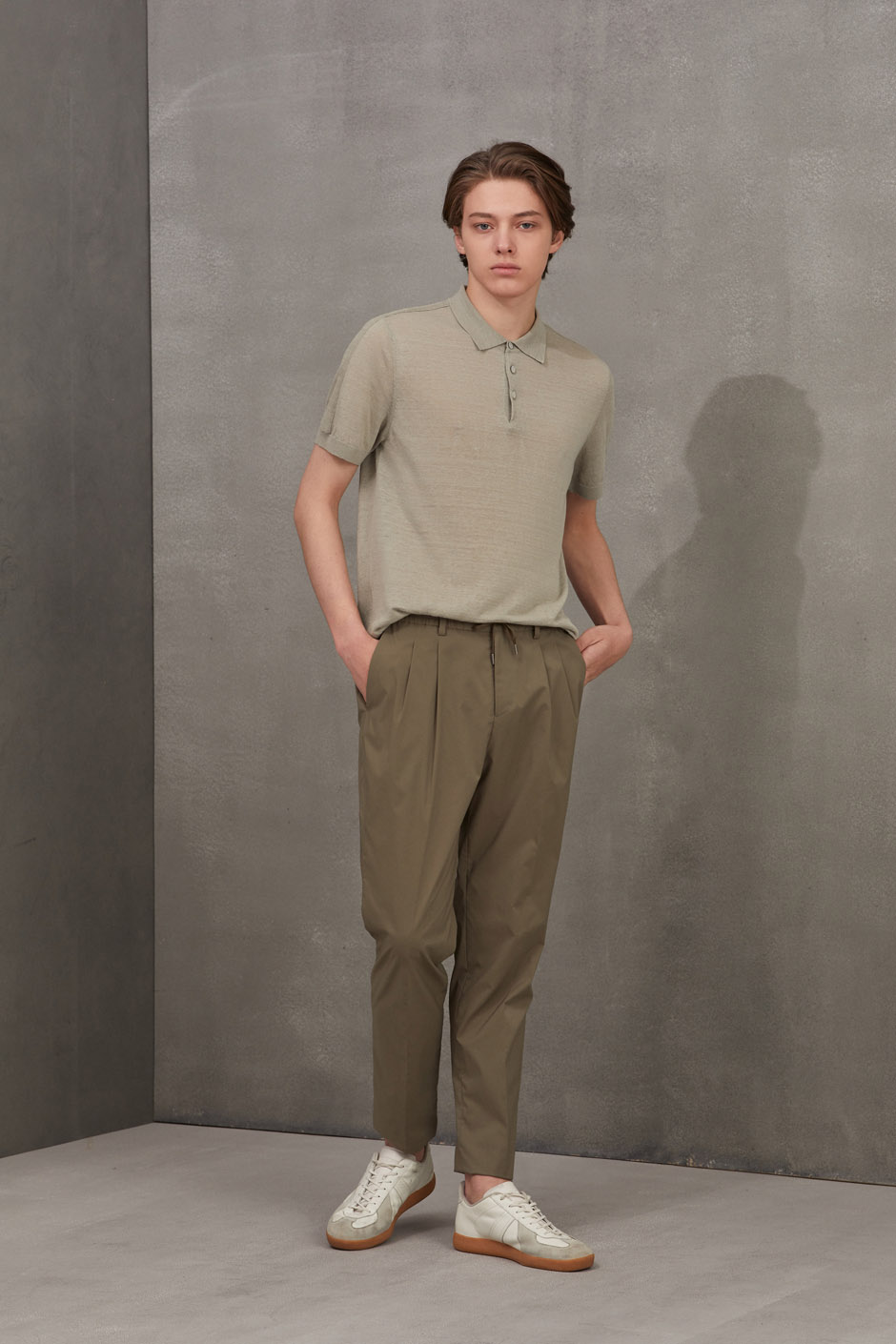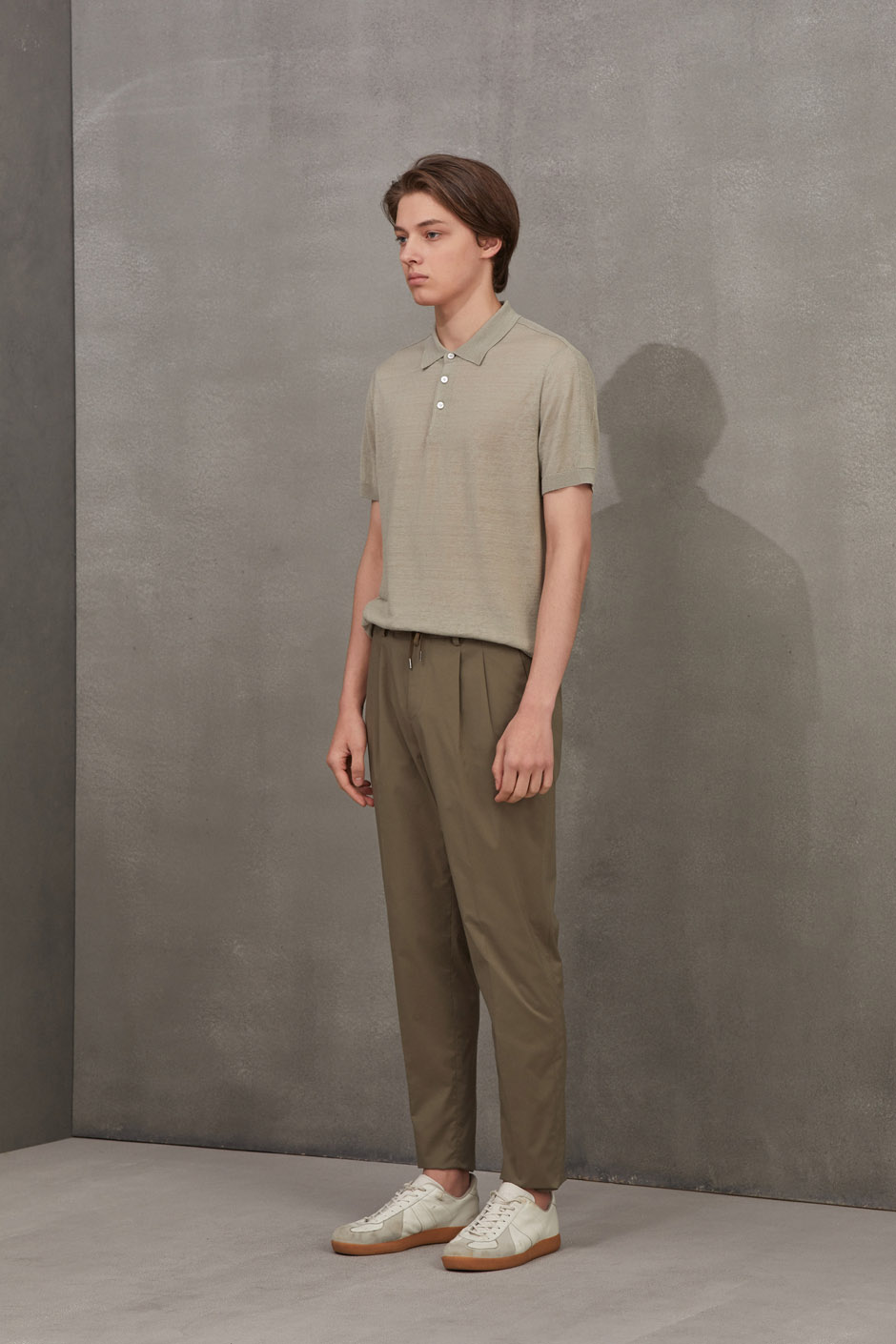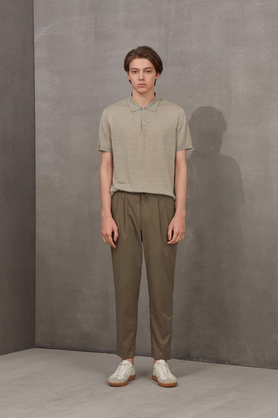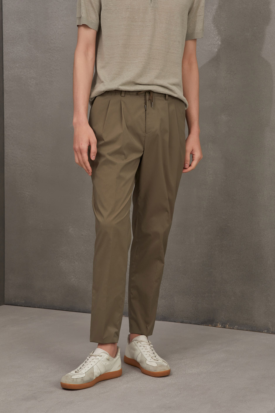 简洁的纯色百搭休闲裤。独特腰部抽绳双褶设计