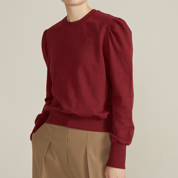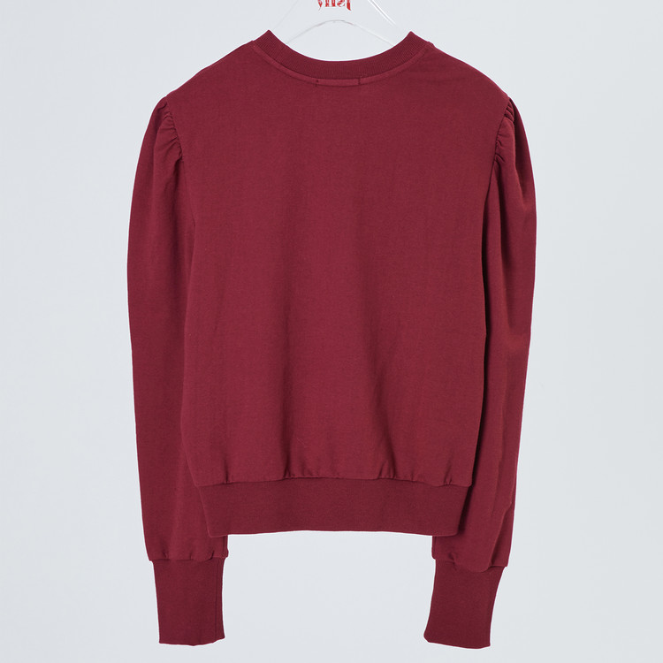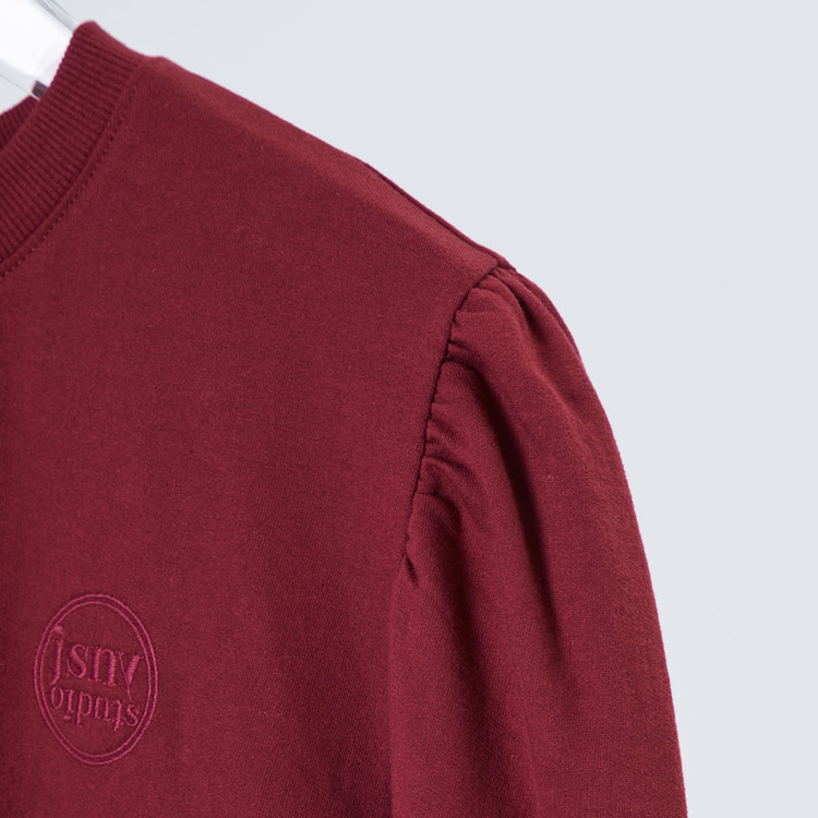 泡泡袖纯色百搭毛衫[酒红色] Puff-sleeve Sweatshirt [WINE]