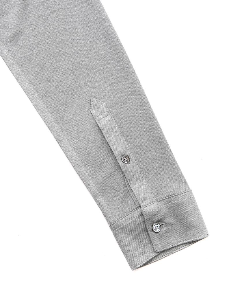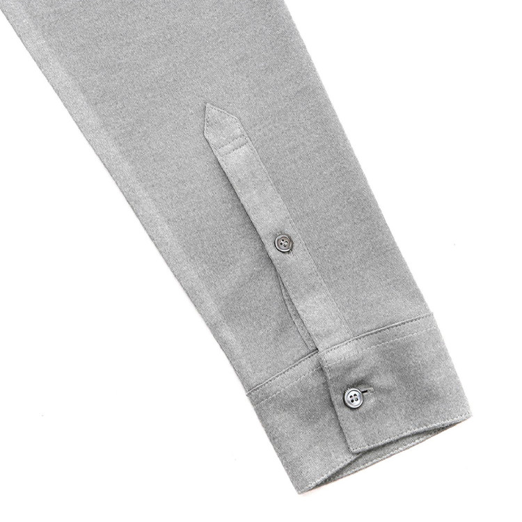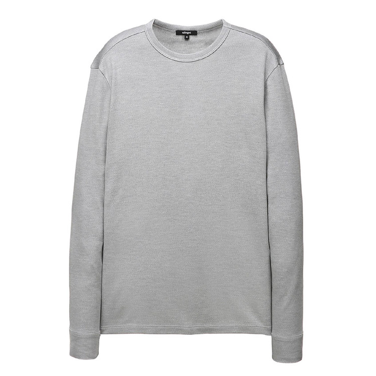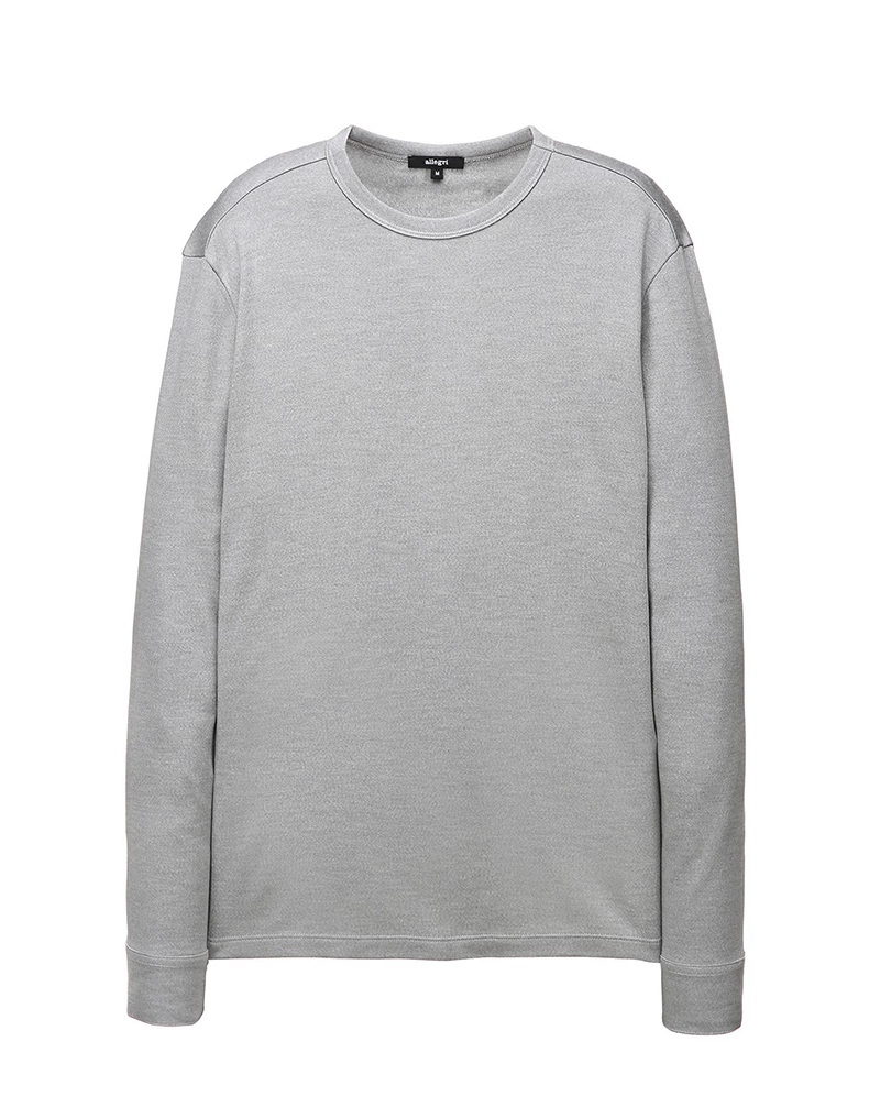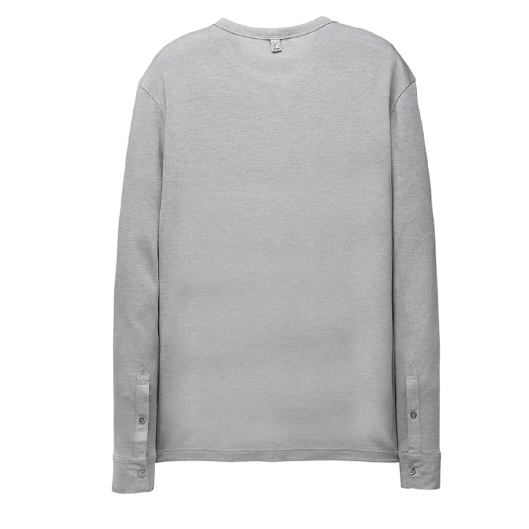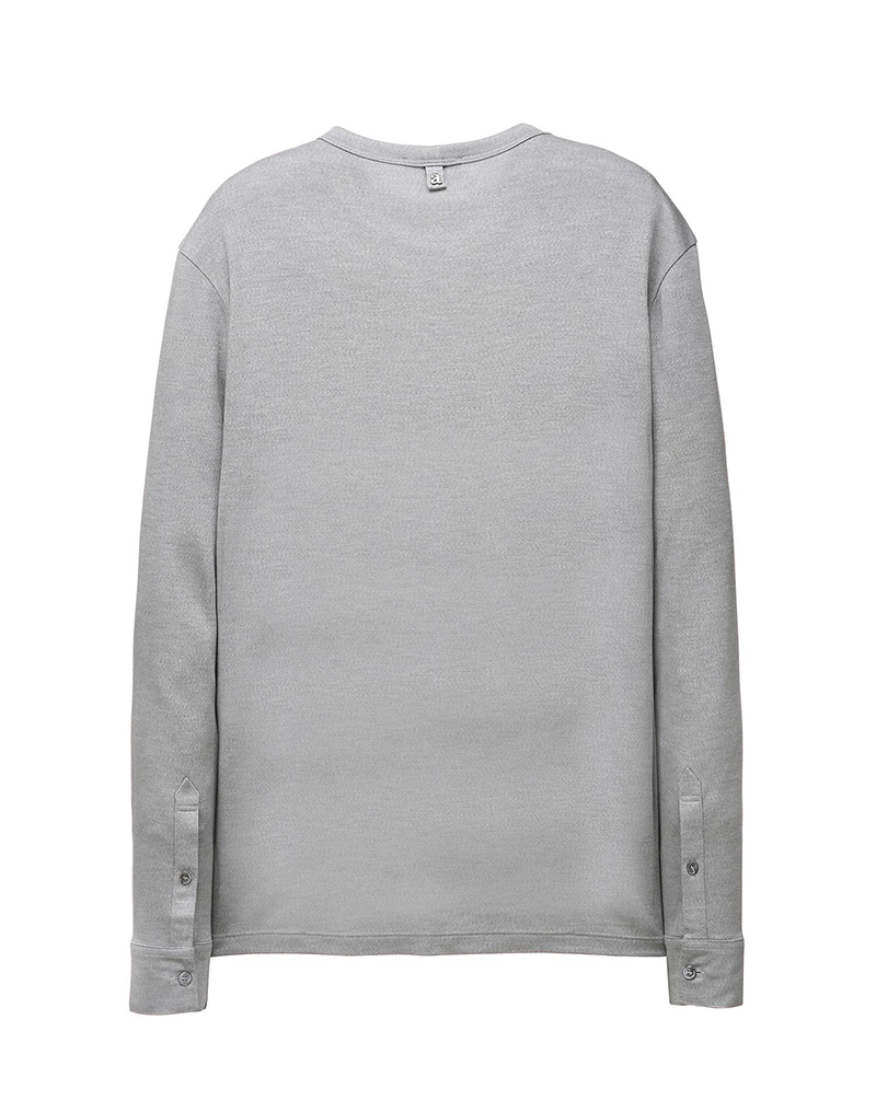 面料表面展现的高档的色彩感和柔软的触感为特点的长袖T恤。穿着舒适,袖口纽扣细节为亮点的时尚单品。