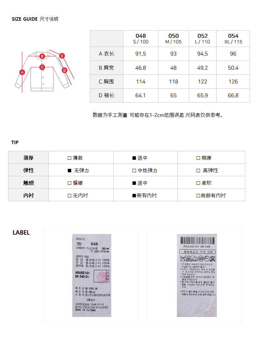 内衬:涤纶100%