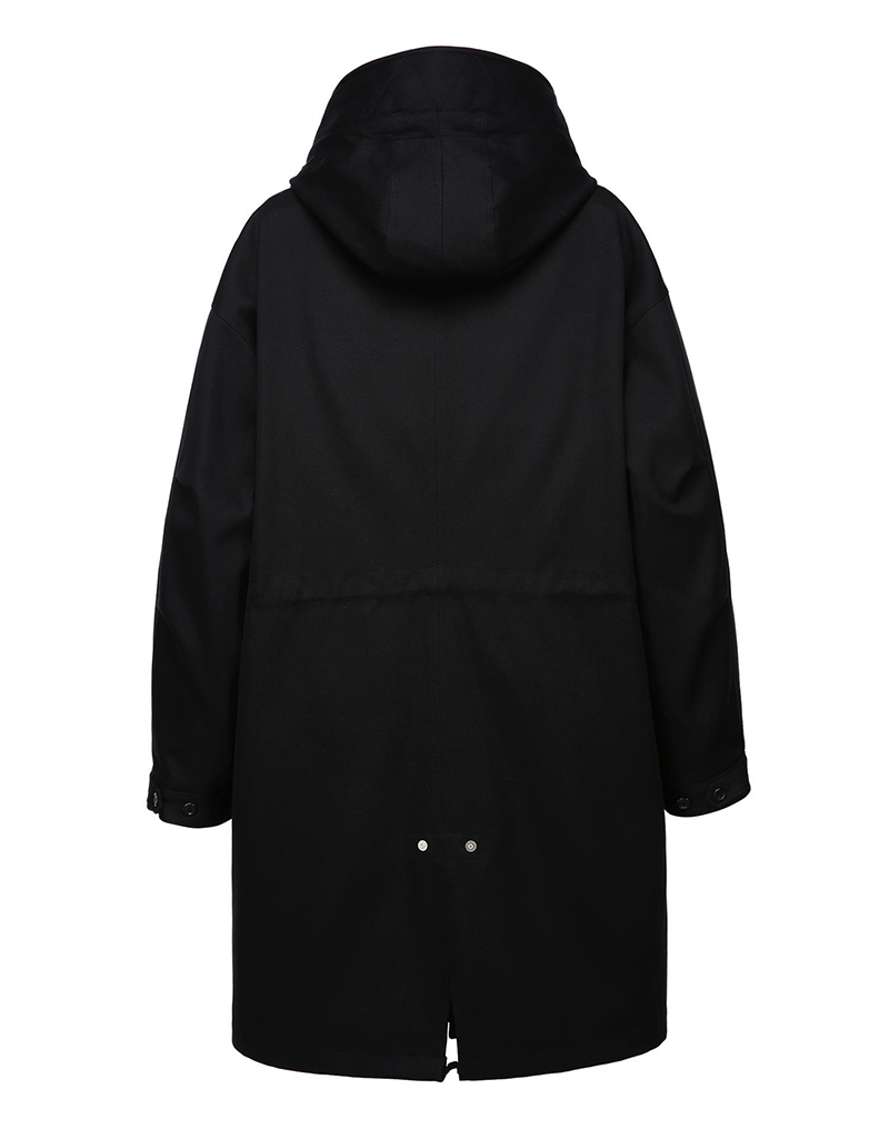 柔软光泽感和轻量面料的卫衣内藏连帽的夹克。可拆卸内衬和双重收紧的完美防寒性和高档设计为特点的外套。