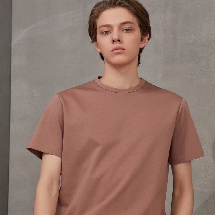 和一般单品T恤明显具有差别的 纯色带有光泽的 高档 高密度 圆领短袖