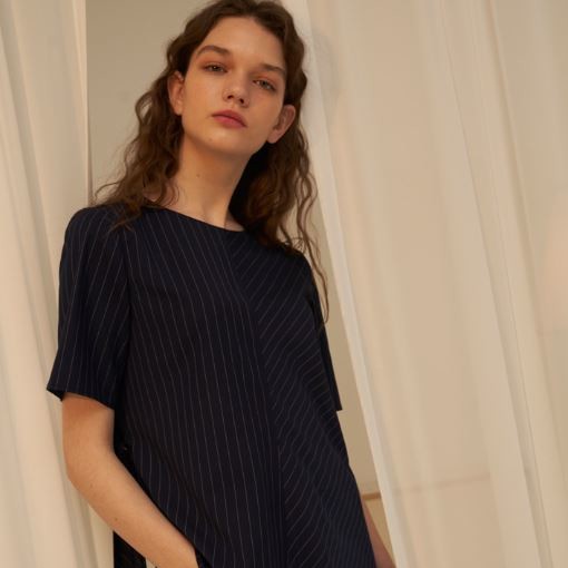 1159STUDIO_MH5 HALF STRIPE FLARE BLOUSE_NV